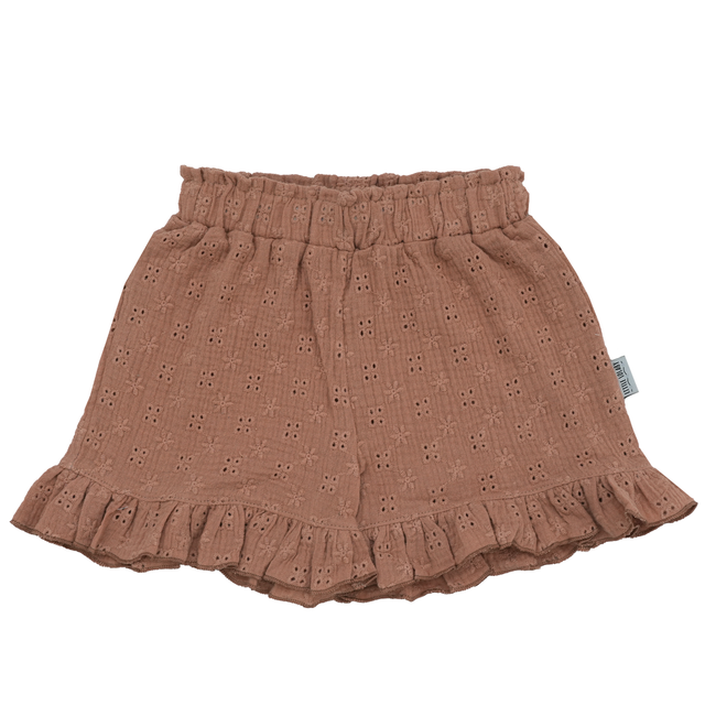Dit broekje wil je voor jouw meisje! Dit shortje is gemaakt van geborduurde katoen met fijne details en schattige ruffles aan de pijpjes. Combineer het met het bijpassende topje voor een complete zomersetje!