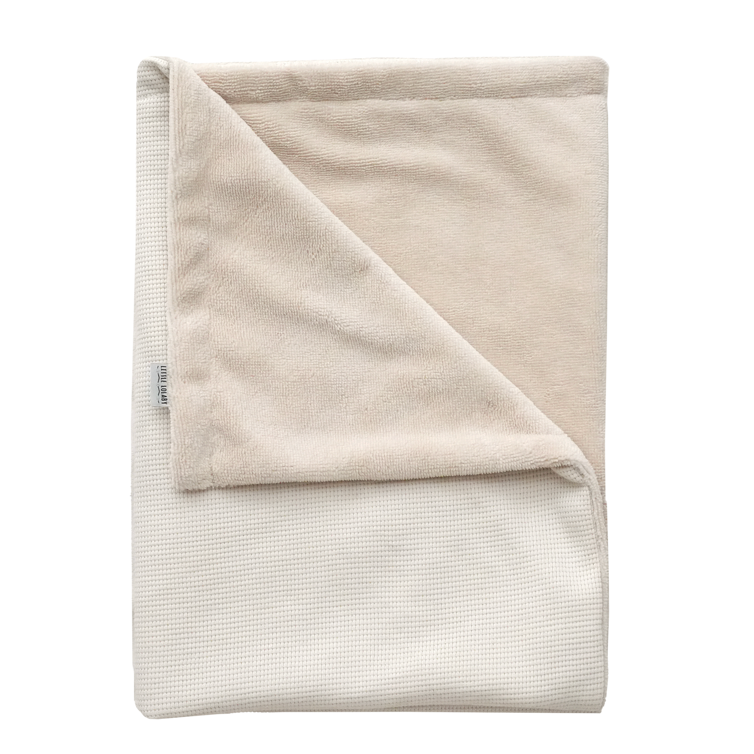 Dekentje van wafel stof gecombineerd met bamboekatoen. Geschikt voor elk seizoen. Perfect te gebruiken in de bijpassende babynestje of kinderwagen.